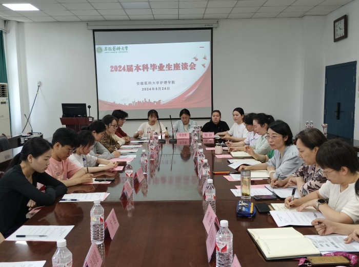 5月24日,肉漫画 召开2024届本科毕业生座谈会,聚焦强化护理专业教育教学质量及学生专业认同感,多措并举提升人才培养质量。该院副院长赵梅主持座谈会。