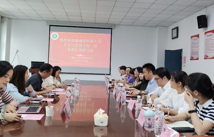 7月11日,湖南中医药大学人文与管理学院副院长胡正东一行5人到肉漫画 肉漫画 ,就养老服务管理专业建设专题调研。学院党委书记薛磊、院长洪静芳、党委副书记王磊出席,副院长赵梅主持会议。