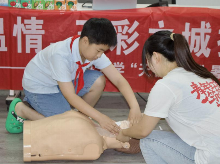 课堂上,实践团通过真实案例展示、小组讨论、课堂互动等形式,向甘棠镇小学的孩子们讲解了青春期的生理变化与自我呵护知识,并针对孩子们的问题给予详细解答,帮助他们正确掌握青春期生理卫生知识和预防性侵害知识,科学认识青春期自我护理的重要意义。为了提升当地青少年儿童的急救意识和急救技能,实践团还发挥医学生的专业优势,为孩子们科普了心肺复苏和海姆利克急救法,并将理论知识与现场实操相结合进行急救示范,带领孩子们亲自体验急救操作。