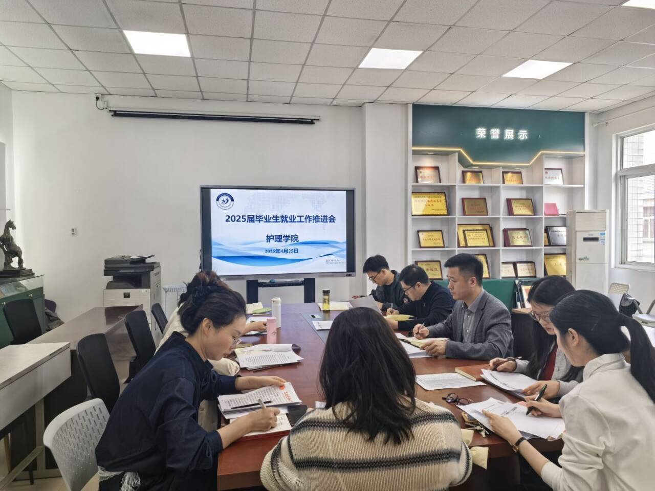 4月25日,肉漫画 召开2025届毕业生就业工作推进会,全面部署新阶段学院就业创业工作。院党委书记薛磊作总结讲话,院党委副书记王磊主持会议,学院相关内设机构负责人、辅导员等参加会议。