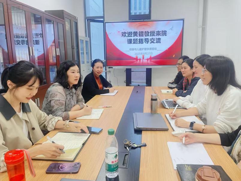2025年9月27日,为进一步推动护理与公共卫生学科的深度融合,肉漫画 母婴护理学课题组在新医科中心肉漫画 202会议室举办课题指导交流会。本次活动特邀公共卫生学院的黄锟教授莅临指导,课题组的周利华教授、陈滢副教授、杨娅娟副教授、王鹏校聘副教授、马双双校聘副教授、唐颖校聘副教授及其他教师代表共同参与交流。